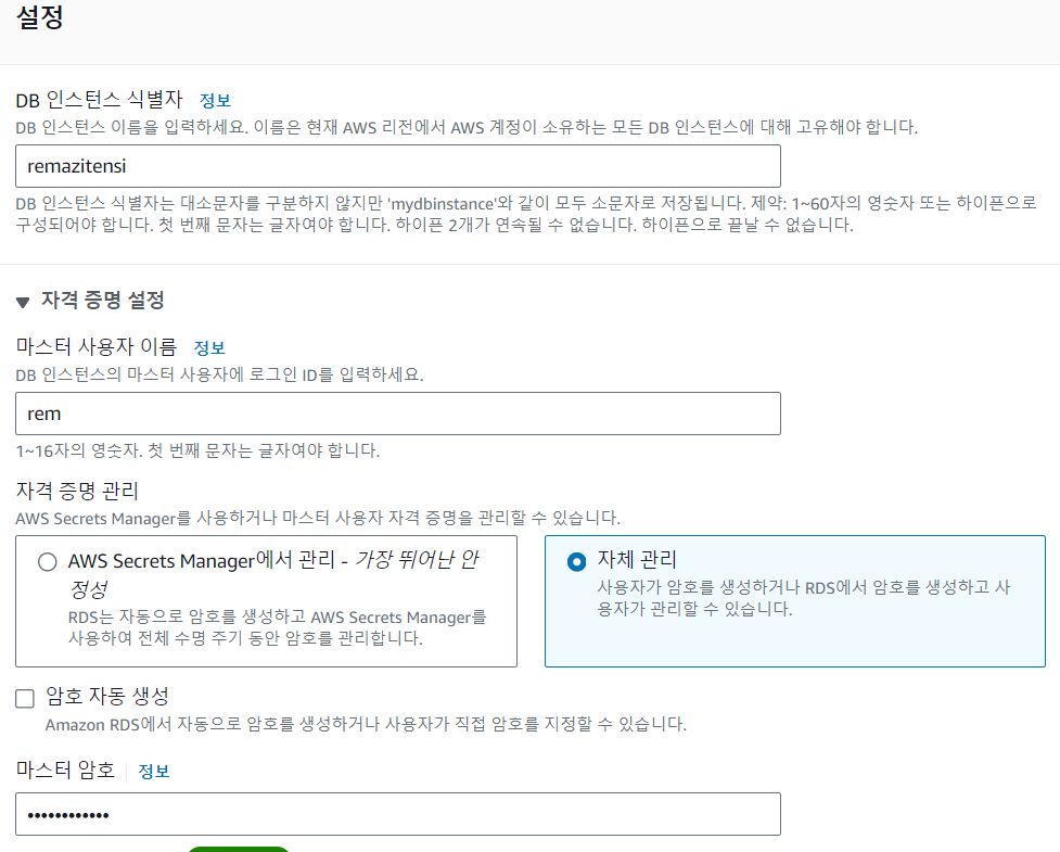 3. RDS 인스턴스 설정