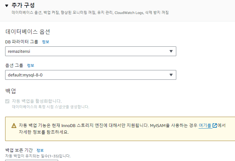 백업 보존 기간은 3일로 설정했습니다!